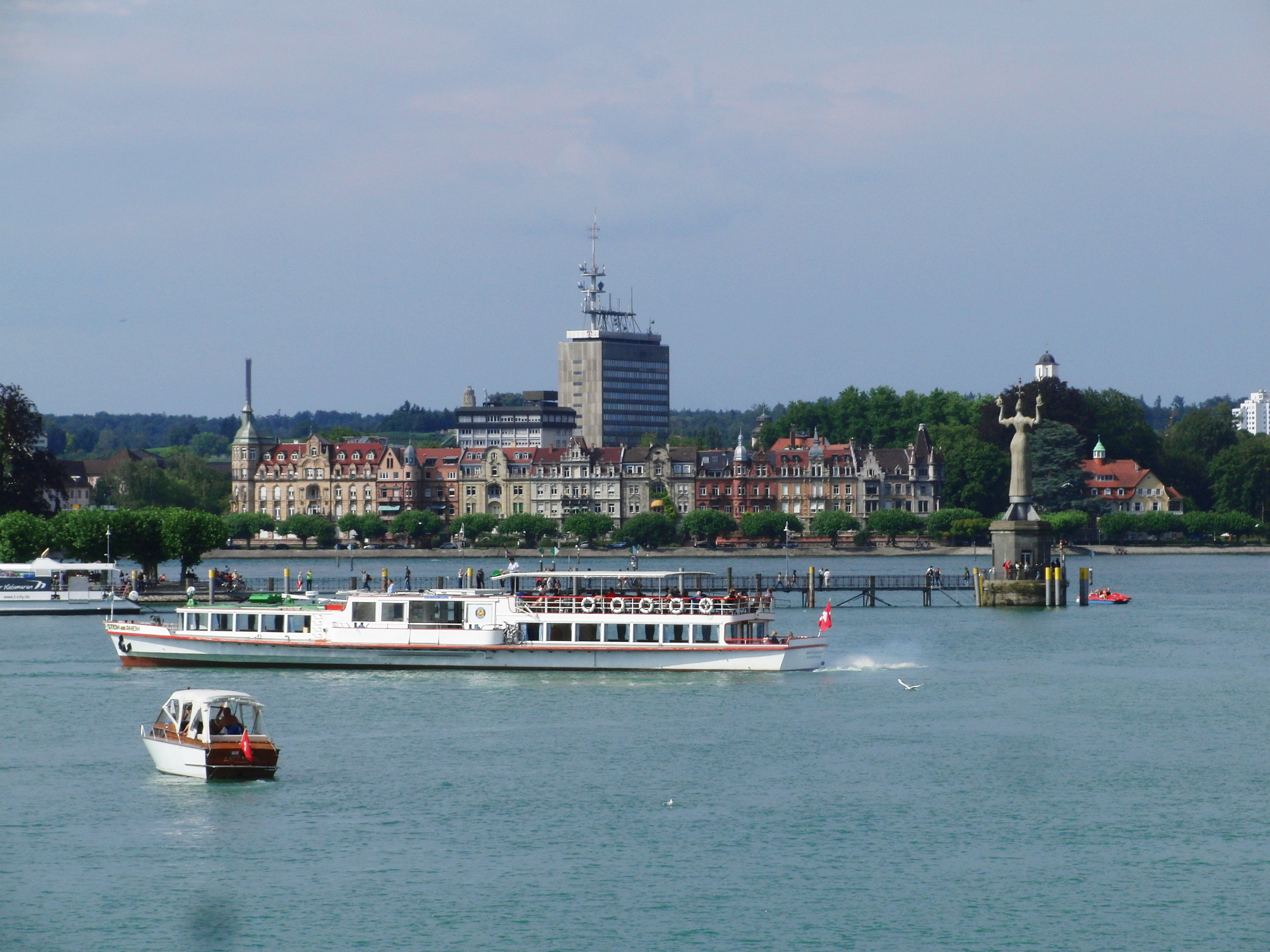Viele Deutsche und Schweizer verbringen die warmen Tage im Sommer am Bodensee. Wie ich in einem anderen Post geschrieben habe, ist der Bodensee riesig, 536 Quadratkilometer und 395m über Meer gelegen, grenzen drei Länder an den See: Deutschland, Oesterreich und die Schweiz. Die Süddeutschen kommen vor allem an den See, um zu baden und zu segeln. Wakeboards, Motor- und Pedaloboote sind aber auch sehr beliebt (ja, hier sind die Trettboote sehr beliebt!). Der grösste Teil des Sees bildet der Obersee, dort zirkulieren auch die meisten Schiffe und dort ist der See auch am tiefsten (252m).