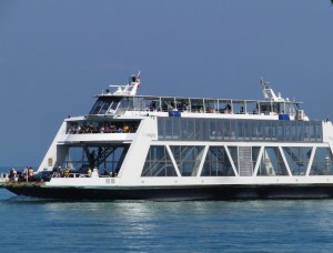Mit Fähren kann man auch bequem von der einen Seite des Sees auf die andere kommen. Die Überquerung dauert zwischen 15 und 50 Minuten. Der Preis für eine Überfahrt von Romanshorn nach Friedrichshafen betragt 34 Euro (PKW 5m: 22 Euro, Erwachsene und Kinder je 4 Euro, zahlt in Euro! der Preis in Franken wäre 52,7 CHF!). Die Fähren haben stets ein Restaurant und Toiletten, zum Teil sogar Massagestühle!