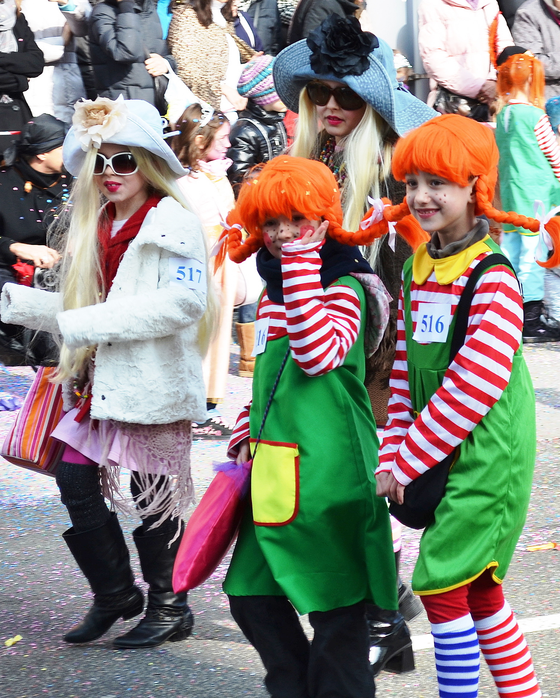 An den Bällen gingen die grösseren und kleineren Kinder stundenlang im Kreis und bewarfen sich gegenseitig mit Konfetti und Luftschlangen. Der süsse Höhepunkt war der Kostümwettbewerb, der auf einer kleinen Bühne stattfand, worüber Piraten, andere Bauchtänzerinnen, Meerjungfrauen und viele Prinzessinnen desfilierten, alle mit einer aufgeklebten Nummer, während am Mikrofon ein Erwachsener sprach, dessen Stimme wegen dem Krach oder der enormen Lautstärke kaum zu verstehen war.