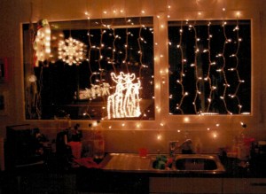 Der Markt für Weihnachtsprodukte besteht hier hauptsächlich aus Produkten aus Deutschland und grenzt an eine Spinnerei. Wir wurden auch langsam verrückt. Im nächst folgenden Jahr war mein Mann drei Stunden draussen auf der Terrasse, um die ganze Terrasse mit Lichtern zu schmücken. Die Nachbarn waren verzückt. Dies spornte uns zu weiterer Höchstleistung an. Im nächsten Jahr hatten wir nebst den blauen Lichter auf der einen Seite, der Lichterkette um die Terrasse und dem Schneeschlitten auf der anderen Seite zusätzlich noch vom Dach hängende Leuchtketten und dazwischen leuchtende Konturen von Rentieren sowie einen Schneemann und einen leuchtenden Tannenbaum. Der Weihnachtsbaum war noch grösser und hatte nun nicht mehr bloss Weihnachtskugeln. Feen, Schmetterlinge, Sterne, Glocken, bunte Steine, Holzfiguren, kleine Soldaten, Ballerinen, Bärchen, Rehe, kleine Schuhe, kleine Taschen und noch etliche andere Stücke waren nun Teil der Dekoration geworden. Leuchtende Kerzen dazu auf allen Seiten. Zwei Krippen hatten wir aufgestellt und an jeder Fenstertüre hing noch eine Girlande.